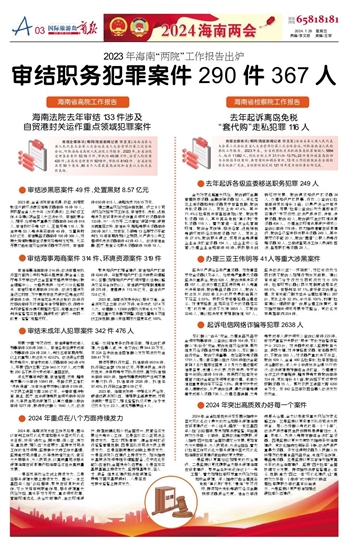 商报全媒体讯(椰网/海拔新闻记者 许文玉)海南省第七届人民代表大会第三次会议在省人大会堂举行第二次全体会议,听取海南省高级人民法院工作报告。2023年,全省法院受理各类案件53.16万件,审执结46.06万件,法官人均结案420件;省高院受理案件9218件,审执结8143件。全省法院共有50个集体、80名个人荣获最高法院和省直以上机关表彰表扬。