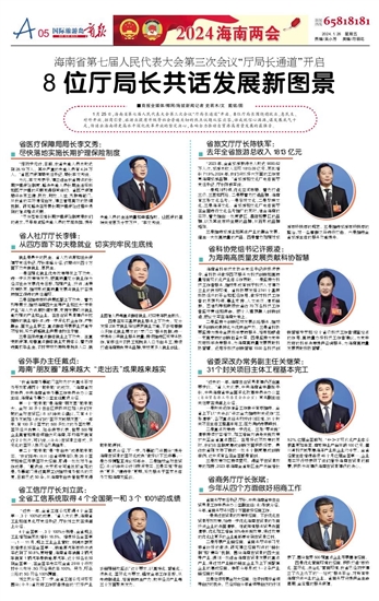 1月25日,海南省第七届人民代表大会第三次会议“厅局长通道”开启。8位厅局长围绕稳就业、惠民生、对外开放、招商引资、旅游业提质升级等社会普遍关切的热点议题从容应答,话成就信心满满,谋发展底气十足,传递出海南将更高水平深化改革开放的坚定决心,奏响全力推动自贸港高质量发展的最强音。