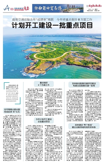 据介绍,2024年,海南省交通运输系统将全面推进自贸港建设交通重点任务,打好封关运作准备攻坚战。
