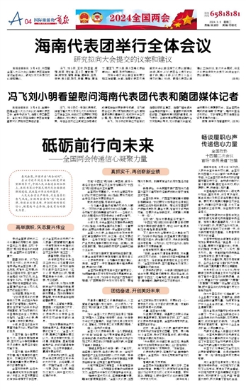 商报全媒体讯 3月4日,出席十四届全国人大二次会议的海南代表团团长、省委书记冯飞,海南代表团副团长、省长刘小明在海南代表团住地看望慰问代表和随团媒体记者。