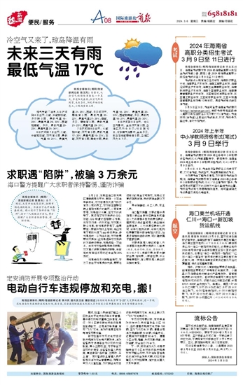 商报全媒体讯(椰网/海拔新闻记者 陈王凤)惊蛰日,从冷空气的缝隙里偷来一个夏天,享受阳光盛宴;冷空气即将到货,未来3天,阳光开始消极怠工,小阵雨重新上阵。