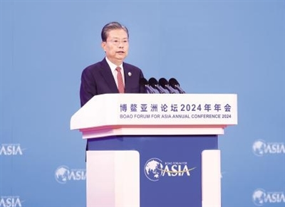▲3月28日上午,全国人大常委会委员长赵乐际在海南博鳌出席博鳌亚洲论坛2024年年会开幕式,并发表题为《团结协作,共迎挑战,携手开创亚洲和世界美好未来》的主旨演讲。(新华社)