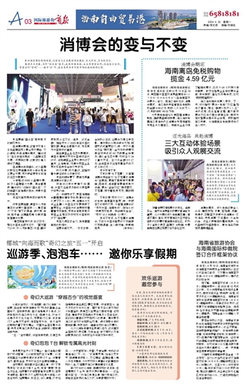 商报全媒体讯(椰网/海拔新闻记者 张艺) 4月13日至18日,第四届中国国际消费品博览会(以下简称“第四届消博会”)在海口举办,深圳免税集团秉承展位营造三大互动体验场景,并联合众多知名酒水品牌参与“逐光海岛·共赴消博”交流酒会,全方位展示企业品牌形象,沉浸式体验企业服务理念。