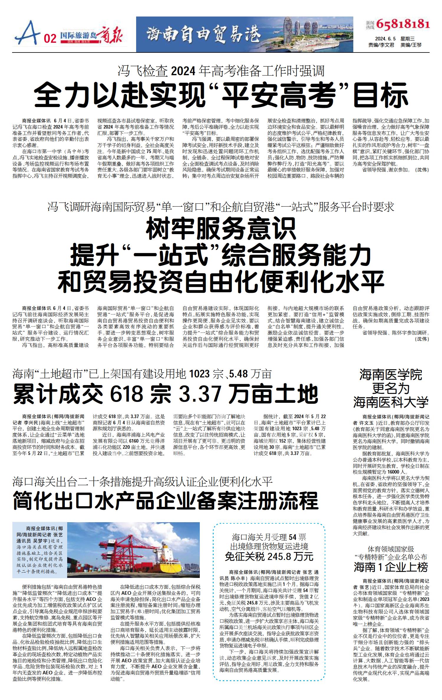 A01 一版要闻 A02 海南自由贸易港 A03 海南自由贸易港 A04 高考加油 A05 健康/科普 A06 健康/科普 A07 重点/彩票 A08 便民/服务