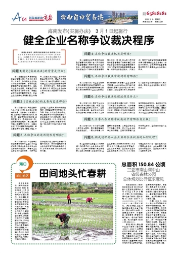 商报全媒体讯(椰网/海拔新闻记者 徐明锋)《海南省企业名称争议裁决实施办法》(以下简称《实施办法》),自2025年3月1日起施行,有效期至2030年2月28日。2月18日上午,海南省市场监督管理局就涉及《实施办法》的8个问题作出解答。