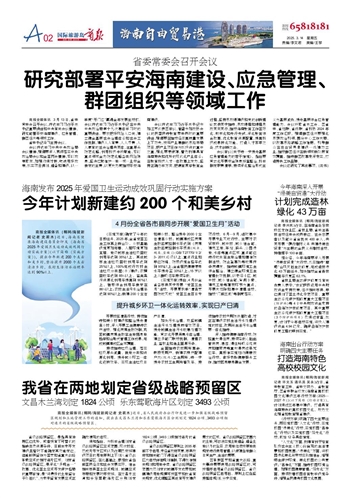 据介绍,今年海南要深入开展“绿美自贸港”大行动,扎实推进“摩羯”台风灾后生态修复,完成造林绿化43万亩任务,加快推动全省森林覆盖率恢复至62.1%。