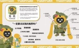 ▲“元元”头戴雨林编织帽,身穿雨林叶子裙,是热带雨林保育研究队中的科普专员