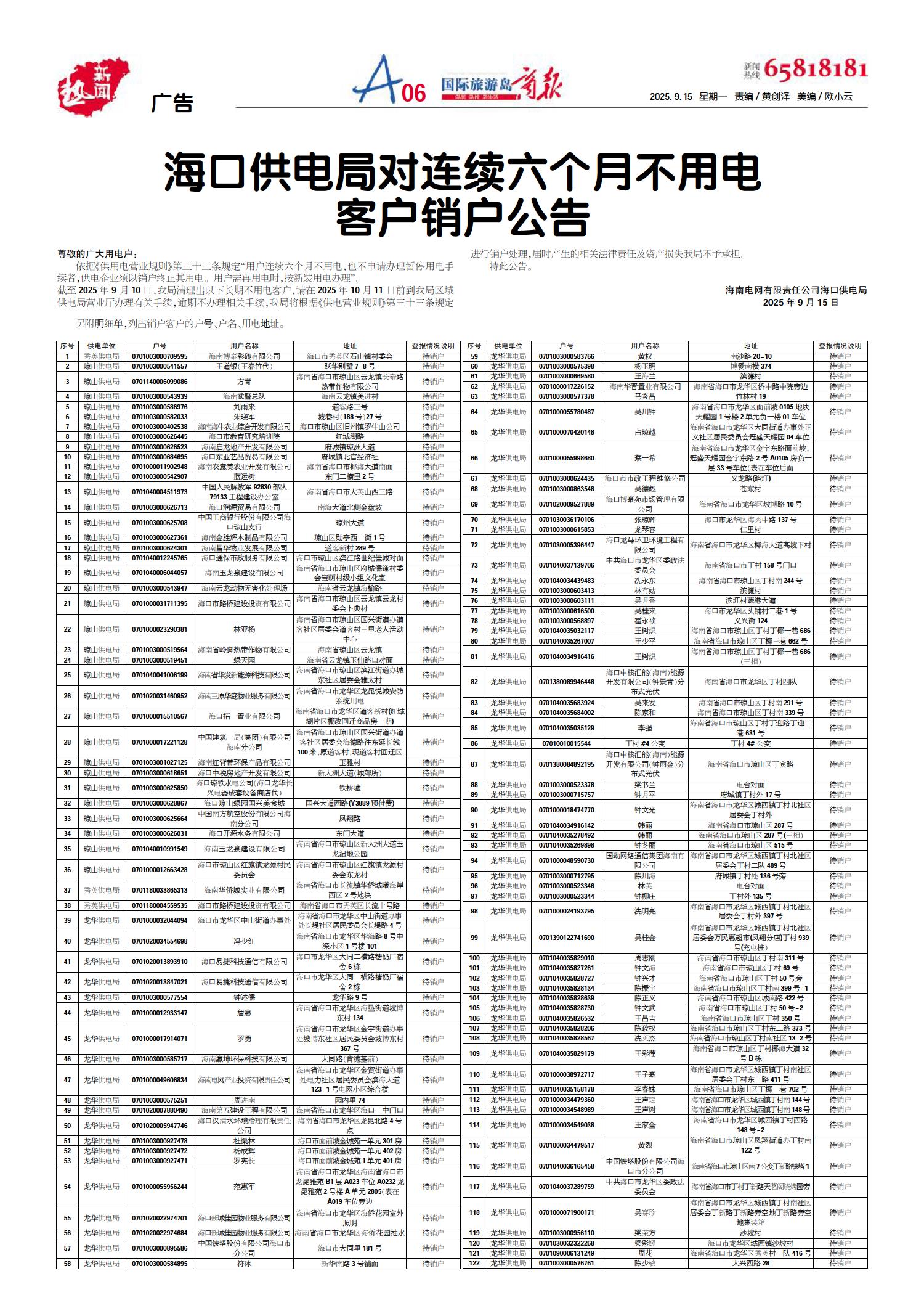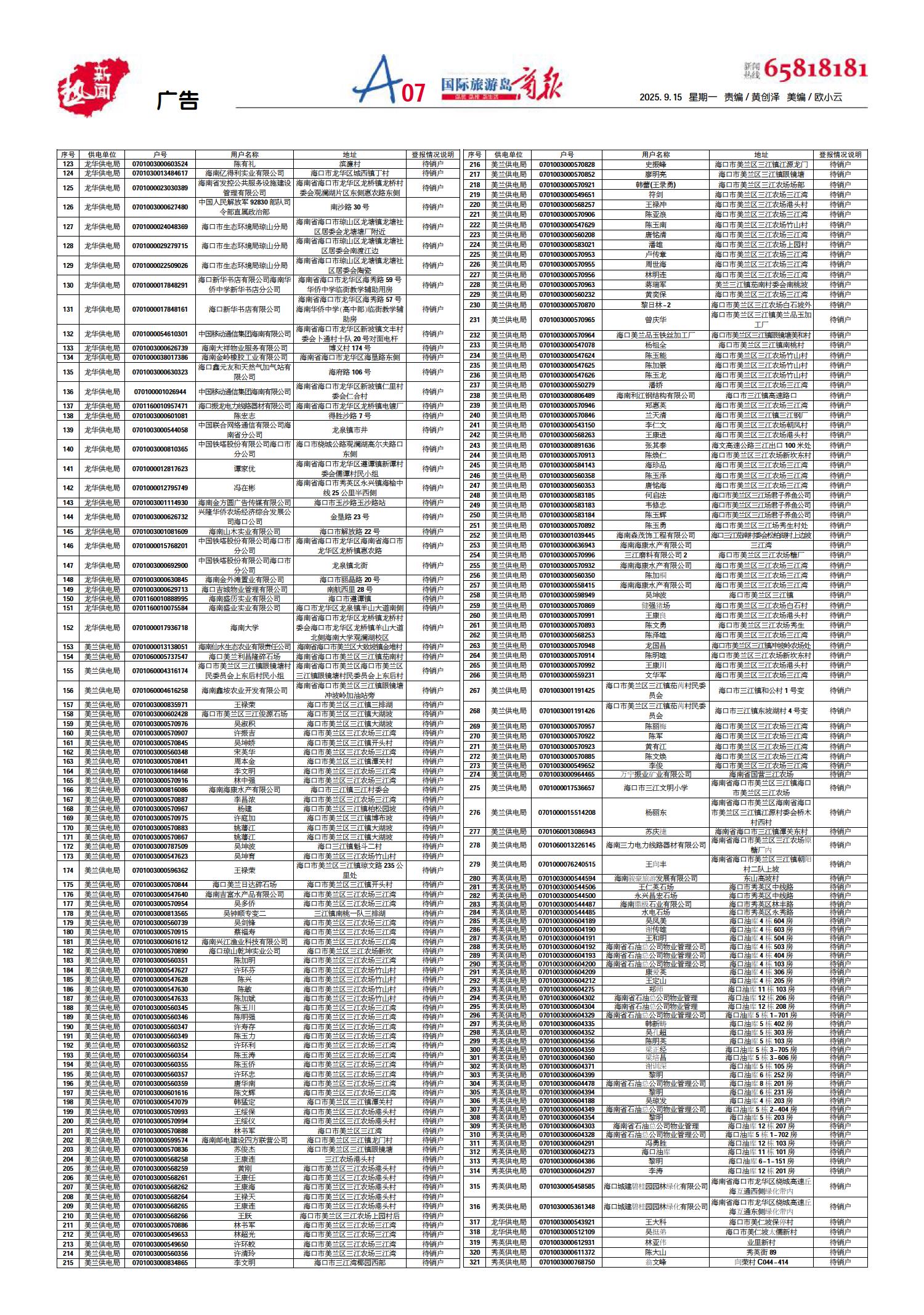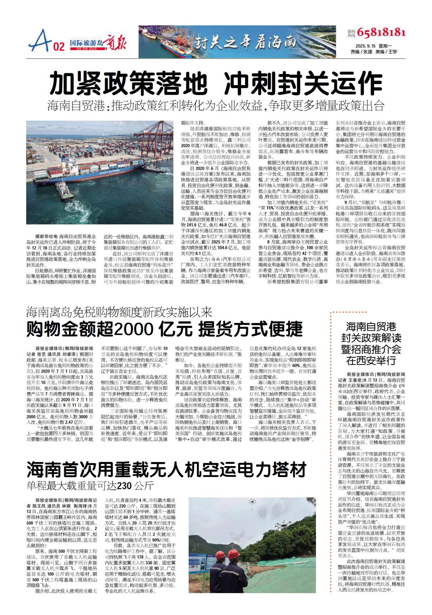 A01 一版要闻 A02 封关之年看海南 A03 封关之年看海南 A04 岛事/重点 A05 岛事/重点 A06 广告 A07 广告 A08 便民/服务