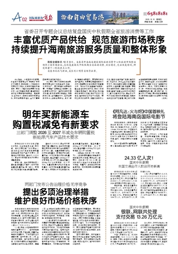 新华社北京10月9日电 记者9日从交通运输部获悉,今年国庆中秋假期(10月1日至8日),全社会跨区域人员流动量累计24.33亿人次,日均3.04亿人次,比2024年同期日均同比增长6.3%。