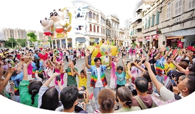 海口各主要旅游景区和特色街区纷纷推出特色活动,吸引了大量市民游客沉浸式参与。海南长影奇幻乐园的《光之秘钥》电影特技秀与音乐烟花秀吸引大量年轻游客;观澜湖华谊冯小刚电影公社以“江河映岁月,深情共回响”为主题,打造了穿越感十足的互动体验;海南热带野生动植物园的“幻野奇遇·生命之舞”演出等特色产品备受青睐。骑楼老街推出“海口·我爱鲁”海岛欢乐大巡游、“锦色·非遗潮秀”展示海口非遗魅力。精准契合市民游客的多元需求,构筑了丰富多彩的文旅消费新场景。