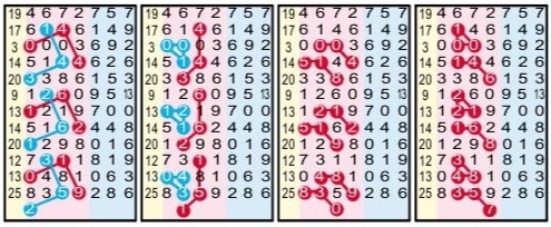 本期重点分析27160549为上奖基数,二数合2、3,三数合3、8,本期17有数。第一位246主攻2,第二位147用1较好,第三位025考虑0稳,第四位047主用7。