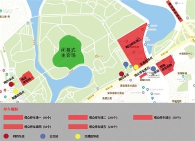 观众车位:参与欢乐节闭幕式及相关活动的市民游客车位。市民游客可自行驶入停车(600车位),同时市民游客可将车辆停放在周边的商场、写字楼、企业停车场,自行做好停车规划。