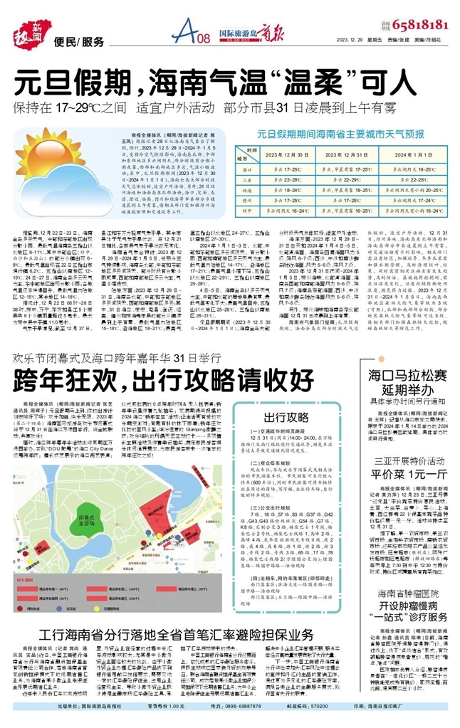 - 跨年狂欢,出行攻略请收好 商报全媒体讯(椰网/海拔新闻记者 张艺 通讯员 周晖子) 元旦假期马上到,你的出游计划安排好了吗?欢乐加倍、快乐无限。2023年(第二十四届)海南国际旅游岛欢乐节闭幕式将于12月31日在海口万绿园