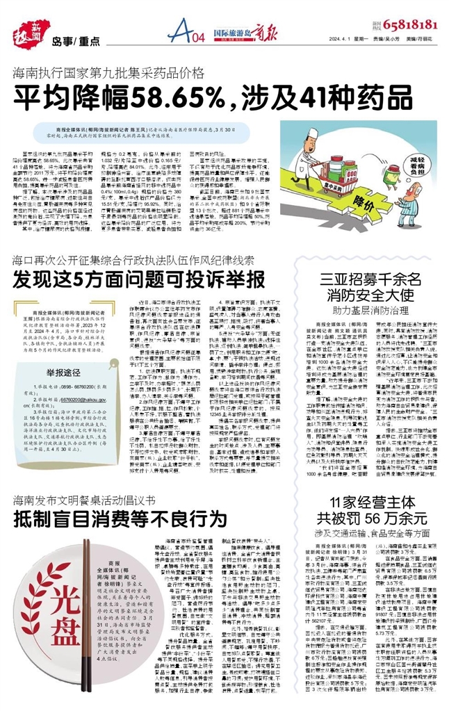 在食品安全方面,因销售超过保质期食品,三亚诚信达贸易有限公司被罚款6.5万元,保亭保城李记烟酒商行被罚款3.5万元。