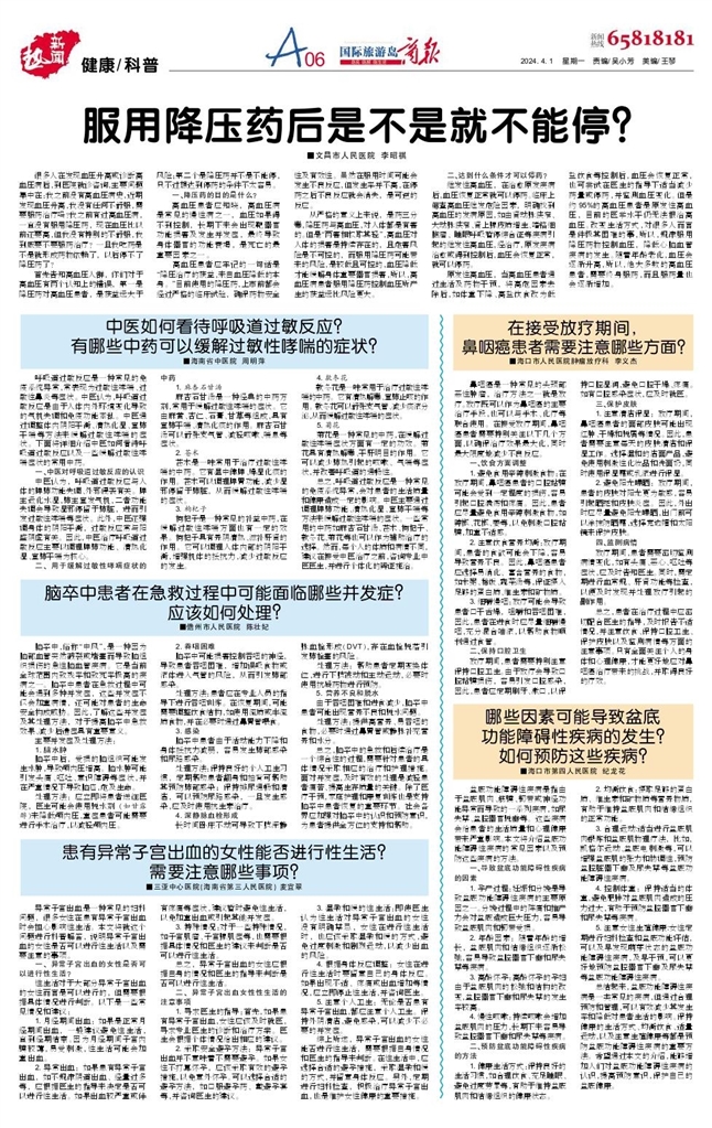 1. 月经期间出血:如果是正常月经期间出血,一般建议避免性生活,直到经期结束。因为月经期间子宫内膜较薄,易受刺激,性生活可能会加重出血。