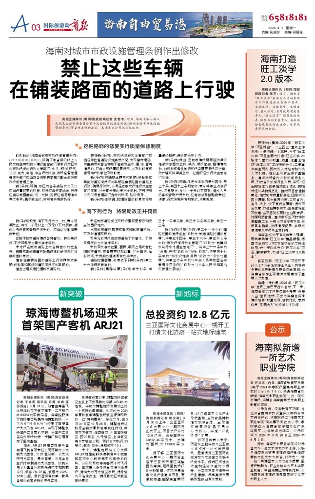 - 禁止这些车辆在铺装路面的道路上行驶 商报全媒体讯(椰网/海拔新闻记者 史若木) 近日,海南省第七届人民代表大会常务委员会第十次会议审议通过修改《海南省城市市政设施管理条例》等2件法规的决定。本决定自公布之日起施行。 挖掘路面的修