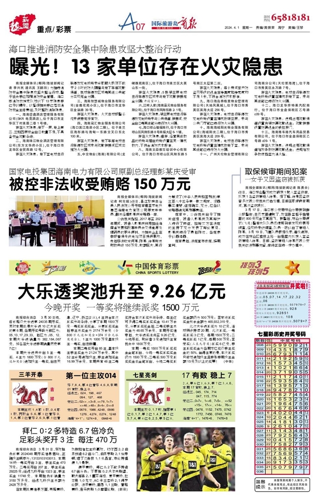- 拜仁0:2多特造6.7倍冷负 足彩头奖开3注 每注470万 商报综合消息 3月31日,足球胜负彩第2024048期开奖结果揭晓,正确投注顺序为:13133103103013。本期14场一等奖开出3注,单注奖金470万元;二等奖开出207注,单注奖金292