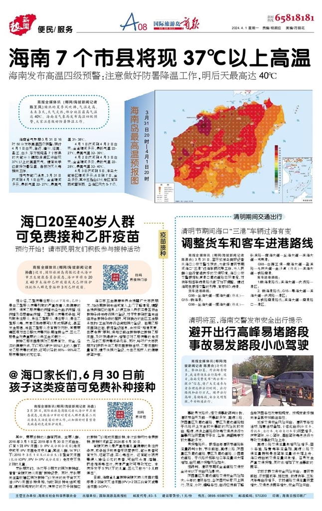 - 调整货车和客车进港路线 商报全媒体讯(椰网/海拔新闻记者 陈勇合) 3月31日,国际旅游岛商报记者从海口公安交警处获悉,为做好清明节期间海口“三港”过海车辆疏导工作,为人民群众出行营造良好的交通环境,海口公安交警根据轮渡