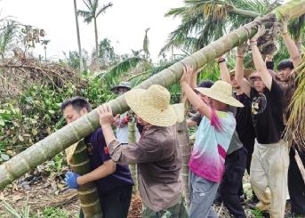 连日来,海南省社科联救灾重建小分队主动作为、积极行动,以时不我待的精神状态,凭借一把油锯、两柄砍刀、4名退役转业军人、8名队员打通生产路2公里,转运生活垃圾20余车,帮助困难军属冯挺清理、栽扶倒伏的槟榔树50多棵,主动联系并配合南方电网援助工作队排除高压线架线故障9处,如期完成高压线通电任务……通路、通电、通水、通网、复工复产,哪里有任务,哪里就会出现海南省社科联救灾重建小分队的身影。