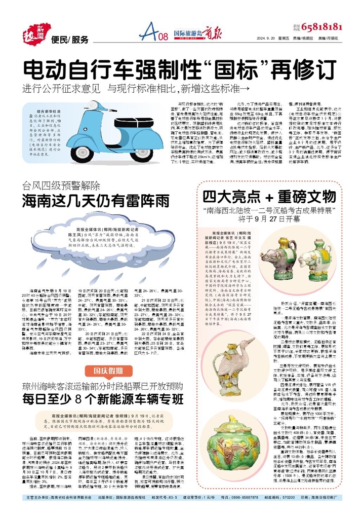 商报全媒体讯(椰网/海拔新闻记者 张艺 许文玉 摄影报道) 9月19日,“深蓝宝藏——南海西北陆坡一二号沉船考古成果特展”新闻发布会在海口举行。会上,海南省旅游和文化广电体育厅二级巡视员杨武介绍,在国家文物局、海南省委、省政府的高度重视和大力支持下,由国家文物局考古研究中心、中国科学院深海科学与工程研究所、海南省文物考古研究院(南海深海考古研究院)、中国(海南)南海博物馆联合主办的“深蓝宝藏——南海西北陆坡一二号沉船考古成果特展”,将于9月27日下午在中国(海南)南海博物馆开幕。