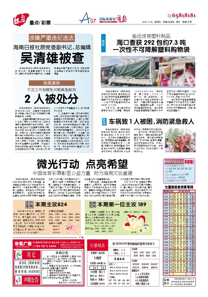 - 吴清雄被查 商报全媒体讯(椰网/海拔新闻记者 陈王凤) 据清廉海南网19日消息,海南日报社原党委副书记、总编辑吴清雄涉嫌严重违纪违法,目前正接受海南省纪委监委纪律审查和监察调查。