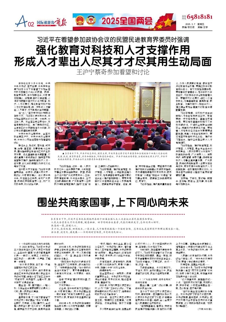 人民大会堂东大厅灯光璀璨,暖意融融。回字形的会议桌旁,代表们踊跃发言,总书记用心倾听。