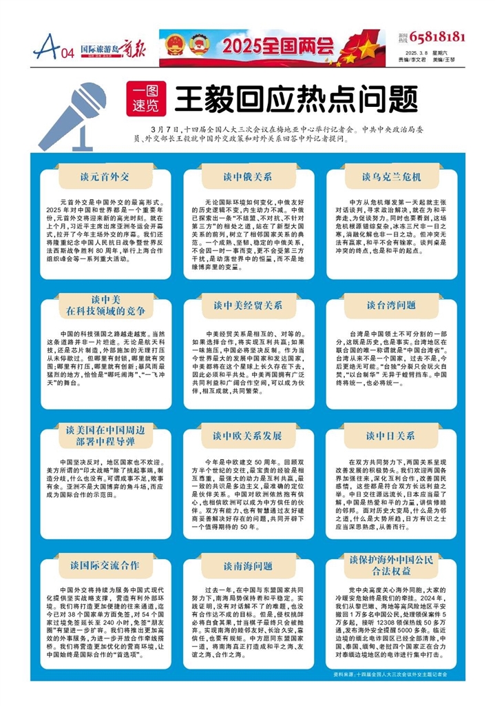 3月7日,十四届全国人大三次会议在梅地亚中心举行记者会。中共中央政治局委员、外交部长王毅就中国外交政策和对外关系回答中外记者提问。
