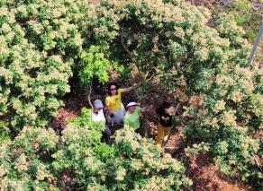 商报全媒体讯(椰网/海拔新闻记者 杨燕 摄影报道)三月春浓,海口永兴镇的万亩荔枝林悄然披上“素雅的白装”,连绵起伏的花海在火山岩间绽放春的美丽。清新素雅的荔枝花缀满枝头,引得蜂群流连翩跹。农户轻抚花枝笑道:“今年花苞比去年密得多,枝头都快压弯了,5月定是满山红果!”