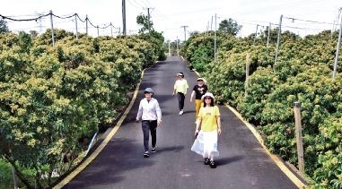 游客漫步在湾园区的荔枝道上,细嗅花香,静听蜂鸣,簇簇白花与黝黑火山石相映成趣,随手定格皆是诗意画卷。春风掠过荔枝花摇曳,空气中弥漫着清甜气息,吸引众多游客前来踏春赏景。