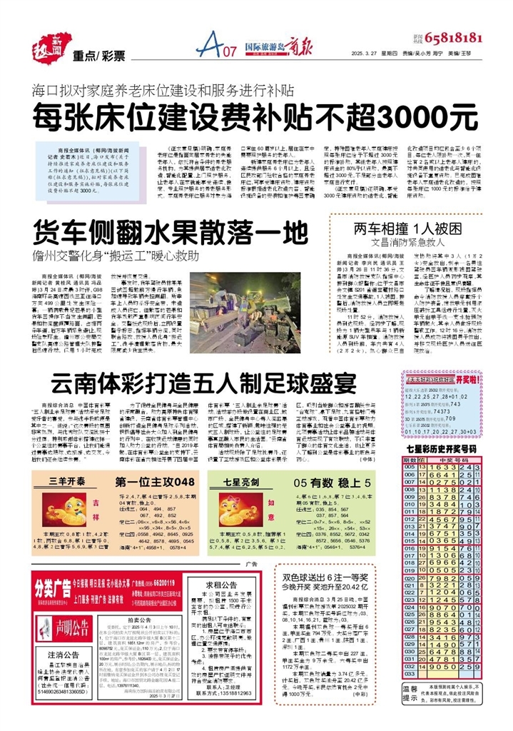 - 每张床位建设费补贴不超3000元 商报全媒体讯(椰网/海拔新闻记者 史若木)近日,海口发布《关于持续推进家庭养老床位建设和服务工作的通知(征求意见稿)》(以下简称《征求意见稿》),拟对家庭养老床位建设和服务实施补贴,每张床位建设费