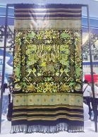 在海南馆的一处显眼处,同样展出了海南的特色宝物——黎锦。此次展出的名为五联幅龙被的黎锦藏品,刺绣技艺难度大,文化品位高,价值100万元。
