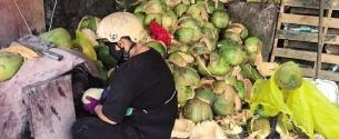 一名零售商张女士表示:“椰子进价从产地6元涨到6.5元,我作为零售商,又从二级批发商那里购买,买一个椰子只能赚五毛或一元,平时不敢卖的太贵,担心影响客流。”