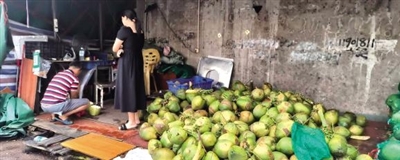 8月25日下午,记者来到海口南北水果市场,看到2家椰子批发老板在忙碌,档口的椰子堆的没有平时多。