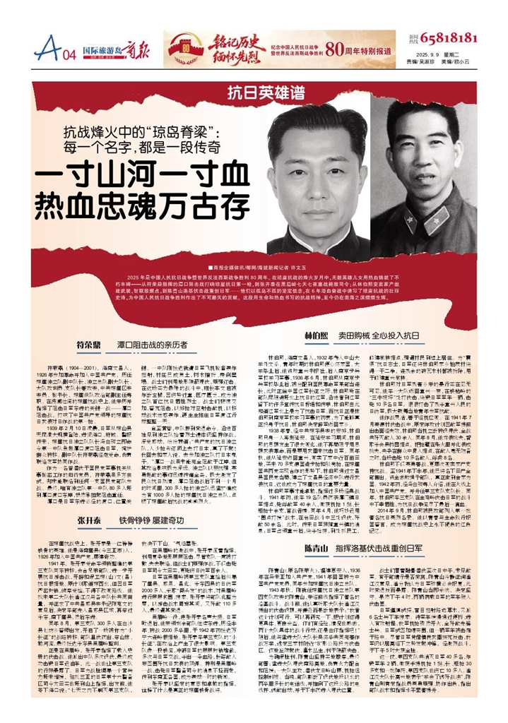 ■商报全媒体讯/椰网/海拔新闻记者 许文玉 2025年是中国人民抗日战争暨世界反法西斯战争胜利80周年。在琼崖抗战的烽火岁月中,无数英雄儿女用热血铸就了不朽丰碑——从符荣鼎指挥的潭口阻击战打响