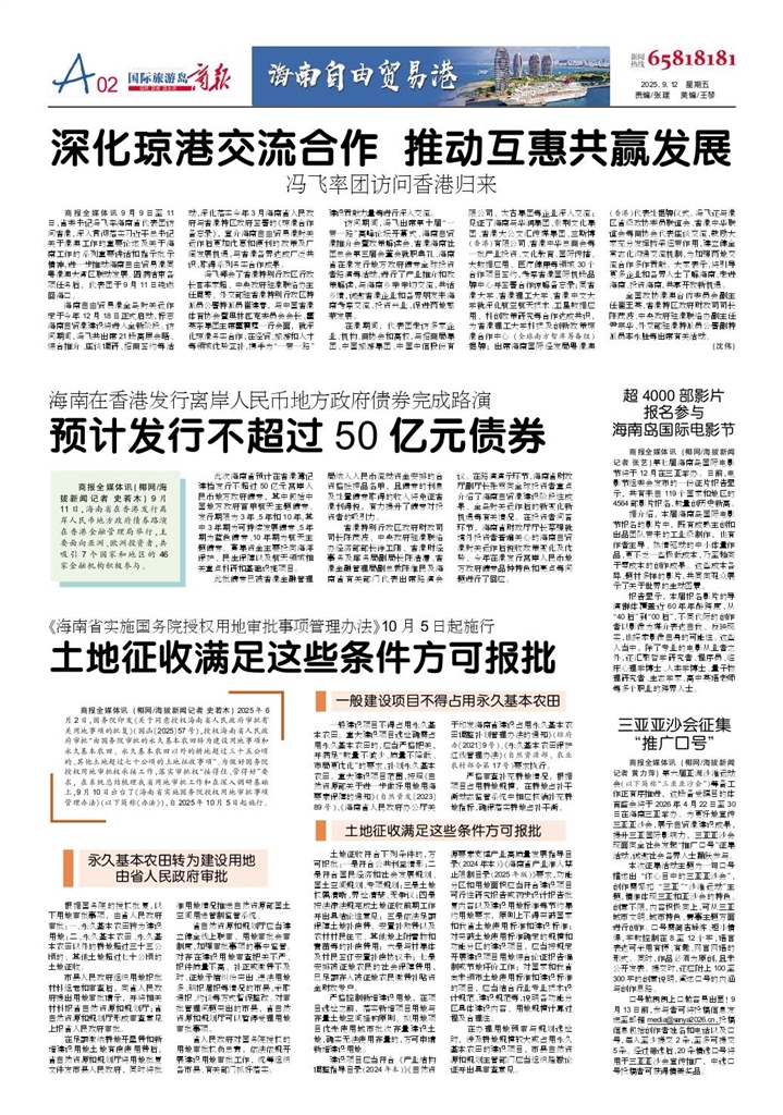 - 土地征收满足这些条件方可报批 商报全媒体讯(椰网/海拔新闻记者 史若木) 2025年6月2日,国务院印发《关于同意授权海南省人民政府审批有关用地事项的批复》(国函〔2025〕57号),授权海南省人民政府审批“由国务院审批的永久