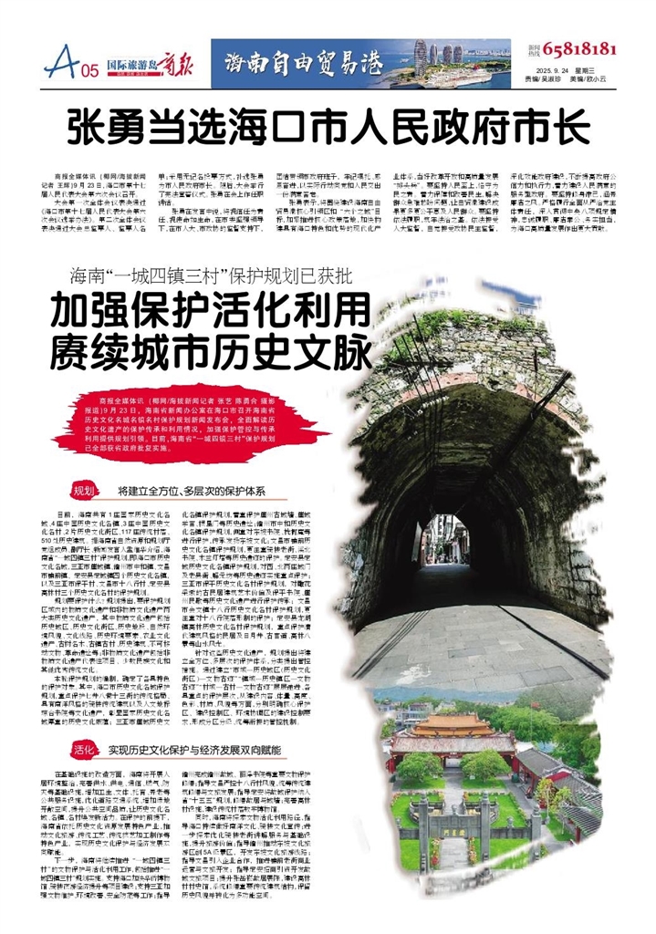 商报全媒体讯(椰网/海拔新闻记者 张艺 陈勇合 摄影报道)9月23日,海南省新闻办公室在海口市召开海南省历史文化名城名镇名村保护规划新闻发布会,全面解读历史文化遗产的保护传承和利用情况,加强保护管