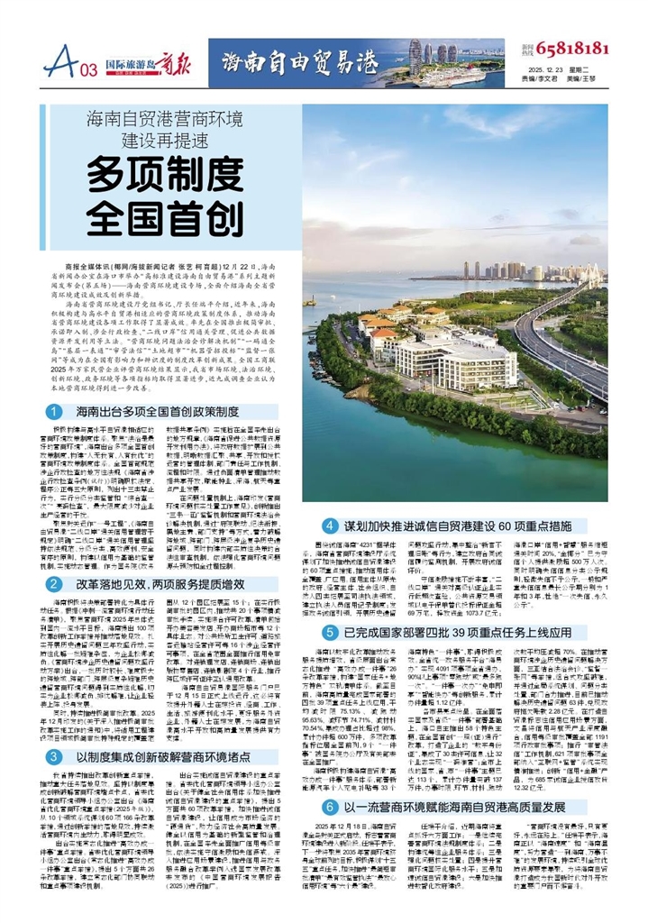 商报全媒体讯(椰网/海拔新闻记者 张艺 柯育超)12月22日,海南省新闻办公室在海口市举办“高标准建设海南自由贸易港”系列主题新闻发布会(第五场)——海南营商环境建设专场,全面介绍海南全省营商环境